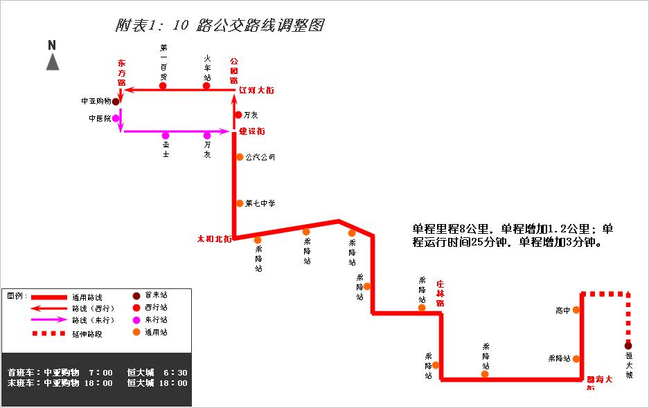 詳見附表1: 10路公交路線調(diào)整圖