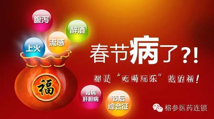 10 Jan 春節(jié)病了?!解決各種節(jié)后綜合征! 2017-02-21 15:25:34 點擊“榕參醫(yī)藥連鎖”關(guān)注春暖花開當(dāng)人們還沉浸在春節(jié)長假和節(jié)日的喜慶中,突然的暴飲暴食,奔波勞累,情緒大幅波動可能會讓很多人不適應(yīng),從而被疾病絆住了享樂的腳步。吃喝得多了,胃腸道不干了,平時的胃炎,痔瘡急性發(fā)作了;玩樂多了,感冒咳嗽,心腦血管疾病一波接一波。一不小心,還帶了一身病菌回來回來;上班了吧,身心疲勞,精神萎靡的。。。詳細(xì)了解一些春節(jié)高發(fā)疾病,輕松應(yīng)對各種節(jié)后綜合癥,健康的度過一個快樂的新春。吃出的病反復(fù)大量食用高能量、高脂肪、高蛋白膳食、過食辛辣等不良飲食方式讓胃腸道不堪重負(fù),上火,腹瀉、消化不良是常見的疾病1上火--陰陽失衡,內(nèi)火旺盛是形容身體內(nèi)某些熱性的癥狀。癥狀包括眼睛紅腫、口角糜爛、尿黃和牙齒痛等。飲食上要注意多吃含維生素的蔬菜水果,多喝水少喝酸甜飲料,少吃辛辣煎炸食品,少抽煙喝酒。吃水果也要引起注意,有的水果屬于熱性水果,比如荔枝、橘子、菠蘿、桂圓、石榴、芒果等。食品中的蔥、姜、蒜、酒、辣椒、胡椒、花椒、熏蒸食品,四川的麻辣燙等都是容易上火的。黃連上清片為清熱劑,具有清熱通便,散風(fēng)止痛之功效。主治上焦內(nèi)熱,癥見頭暈?zāi)X脹,牙齦腫痛,口舌生瘡,咽喉紅腫,耳痛耳鳴,暴發(fā)火眼,大便干燥,小便黃赤。2腹瀉--急性腸炎,胃腸型感冒指逢年過節(jié),常會因貪吃而傷食,傷食會出現(xiàn)腹瀉,一般癥狀是腹痛腸鳴,瀉下糞便臭穢,瀉后腹痛減輕,伴有脘腹脹滿,噯腐酸臭,食欲不振等。不同情況的傷食需要辯證處理,對各種肉類傷食,可嚼食山楂片、山楂糕;對魚肉傷食,可選生姜紫蘇汁;雞蛋傷食,可選白醋米湯服;面食所傷,可取生姜米酒服;腹脹、厭食甚者,可取陳皮姜紅糖飲;兒童傷食,可選山楂青皮煎湯。正露丸化滯止瀉,用于飲食不節(jié)或水土不服引起的成人及小兒腹瀉,屬于濕熱、食滯證者。癥見:食欲不振,惡心嘔吐,腹脹腹瀉,消化不良。3消化不良--胃脹、食欲不振消化不良,是指具有上腹痛、上腹脹、早飽、噯氣、食欲不振、惡心、嘔吐等不適癥狀,消化不良實際是所有胃部不適的總稱,消化不良癥狀說明消化過程受到了某種原因的干擾。消化不良可以是偶然的,也可以是慢性持續(xù)的。多潘立酮片由胃排空延緩、胃食道反流、食道炎引起的消化不良癥。上腹部脹悶感、腹脹、上腹疼痛;-曖氣、腸胃脹氣;-惡心、嘔吐;口中帶有或不帶有反流胃內(nèi)容物的胃燒灼感。喝來的傷節(jié)日飲酒過度,肝臟胰臟負(fù)擔(dān)過大,導(dǎo)致急性肝膽胰炎癥的高發(fā)。泌尿系統(tǒng)也不可避免受到波及,特別是前列腺炎,泌尿系統(tǒng)感染。1胃病--上腹不適疼痛、飽脹暖氣環(huán)境、飲食、藥物,細(xì)菌以及吸煙,過度飲酒等可導(dǎo)致胃酸過度分泌而破壞胃保護(hù)層,從而產(chǎn)生潰瘍。春節(jié)喝酒是其常見誘因。最常見的有上腹部不適或疼痛,惡心嘔吐、腹瀉、食欲不振。可吃一些易消化、清淡、營養(yǎng)豐富的食物如五谷雜糧、豆?jié){、豆腐、蛋、魚、嫩瘦肉、動物肝臟等,以減少胃酸對胃腸粘膜的刺激。該戒煙、酒、咖啡、濃茶、碳酸性飲品(汽水)、酸辣等刺激性食物。鹽酸雷尼替丁膠囊,適應(yīng)癥為用于緩解胃酸過多所致的胃痛、胃灼熱感(燒心)、反酸。用于治療十二指腸潰瘍、胃潰瘍、反流性食管炎、卓-艾(Zollinger-Ellison)綜合征及其他高胃酸分泌疾病。2急性胰腺炎臨床以急性上腹痛、惡心、嘔吐、發(fā)熱和血胰酶增高等為特點。病變程度輕重不等,輕者以胰腺水腫為主,臨床多見,病情常呈自限性,預(yù)后良好,又稱為輕癥急性胰腺炎。少數(shù)重者的胰腺出血壞死,常繼發(fā)感染、腹膜炎和休克等,病死率高,稱為重癥急性胰腺炎。西咪替丁片消化性潰瘍、上消化道出血等,也用于急性胰腺炎和胰腺囊樣纖維變、返流性食管炎、胃泌素瘤等。3急性膽囊炎是由于膽囊管阻塞和細(xì)菌侵襲而引起的膽囊炎癥;其典型臨床特征為右上腹陣發(fā)性絞痛,伴有明顯的觸痛和腹肌強直。約95%的病人合并有膽囊結(jié)石,稱為結(jié)石性膽囊炎;5%的病人未合并膽囊結(jié)石,稱為非結(jié)石性膽囊炎。消炎利膽片為祛濕劑,具有清熱,祛濕,利膽之功效。主治肝膽濕熱所致的肋痛,口苦;急性膽囊炎、膽管炎。玩出的禍青年人由于聚會,旅游等群集活動較多,容易感染細(xì)菌病毒,特別是上呼吸道感染。而放假后回來上班的“節(jié)后綜合癥”也越來越常見。1感冒總體上分為普通感冒和流行感冒,普通感冒,祖國醫(yī)學(xué)稱"傷風(fēng)",是由多種病毒引起的一種呼吸道常見病,其中30%-50%是由某種血清型的鼻病毒引起。流感病毒引起的急性呼吸道傳染。隔離抗病毒治療,臥床休息,多飲水。撲熱息痛用于普通感冒或流行性感冒引起的發(fā)熱,也用于緩解輕至中度疼痛如頭痛、關(guān)節(jié)痛、偏頭痛、牙痛、肌肉痛、神經(jīng)痛、痛經(jīng)。2病毒性肝炎法定傳染病,具有傳染性較強、傳播途徑復(fù)雜、流行面廣泛、發(fā)病率較高等特點;部分乙型和非甲非乙型肝炎病人可演變成慢性,對人民健康危害甚大。其中甲型和戊型主要表現(xiàn)為急性肝炎,乙、丙、丁型主要表現(xiàn)為慢